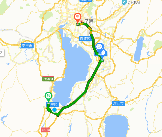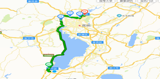 二、学生专线2:晋宁学校—前兴路公交车场,途经站点:晋宁学校- 途经高海高速、张峰隧道、草海隧道、滇池路-昆明市青少年活动中心(停靠)-途经环城南路-西岳庙(停靠)-途经海埂路、前兴路-前兴路公交枢纽站(终点站停靠)