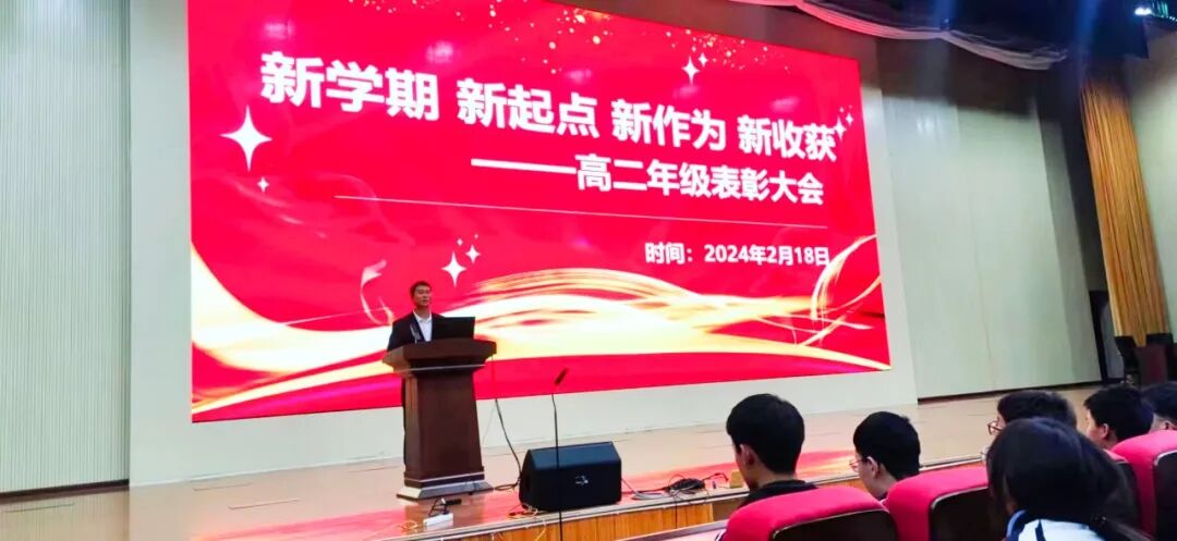本次年级大会主题突出一个“新”字,春天赋予新的希望,迎来新的开始。年级组长莫溪武老师对上学期的年级管理和同学表现做了重要总结,同时也对同学们提出了几点期望:一、作息方面:严格遵守作息时间。二、纪律方面:严格遵守校规校纪。三、学习方面:上好每堂课,高效且专注。会议最后,莫组长代表高二年级组全体老师祝愿所有同学:学有所成,学有所用。
