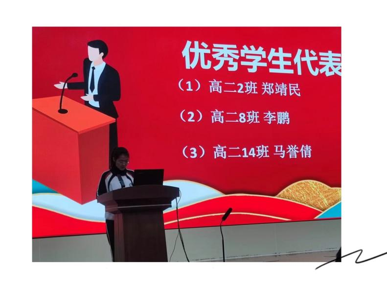 榜样凝聚力量,铸就青春梦想。在本次年级大会上,高二(2)班郑靖民、高二(8)班李鹏、高二(14)马誉倩分别作为物化生组合、物化地组合和历政生组合的优秀学生代表上台分享了自己的学习经验和感悟。三位同学都强调了学习需要明确目标、静心专注、持之以恒。希望同学们以优秀的同学为榜样,总结得失、探寻方法,继续努力,勤奋进取,期待下次年级大会更多优秀代表上台分享。